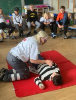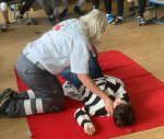 Mit viel Engagement und anschaulichen Übungen vermittelte sie den Kindern in vier Unterrichtsstunden wichtige Grundlagen der Ersten Hilfe.