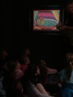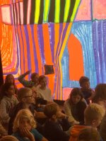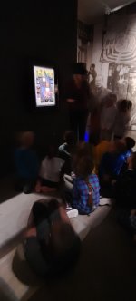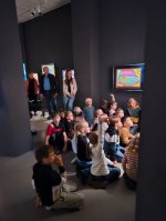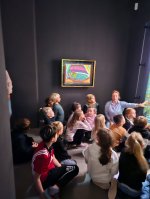 Die Museumspädagoginnen Jana und Judith nahmen sich viel Zeit für uns. Mit großer Begeisterung erklärten sie Besonderheiten aus Hundertwassers Leben und Werk, zeigten uns markante Elemente seiner Bilder und machten uns auf viele spannende Details aufmerksam. Besonders schön war, dass die Kinder selbst auf Entdeckungsreise gehen durften: Gemeinsam fanden wir immer wieder neue Muster, Formen und Ideen, die Hundertwassers Kunst so einzigartig machen.
